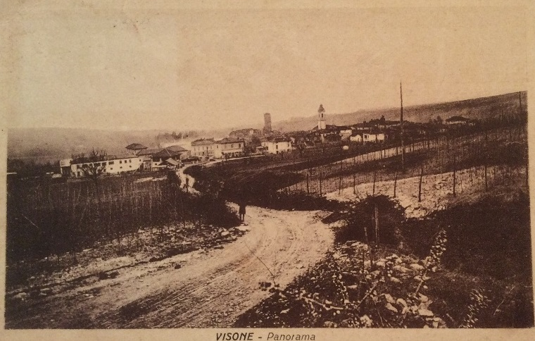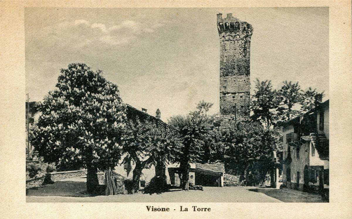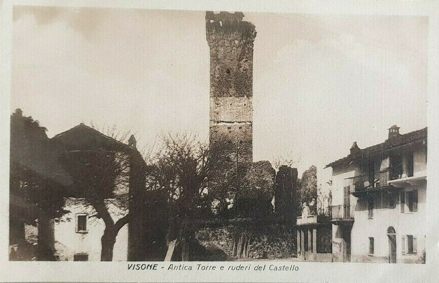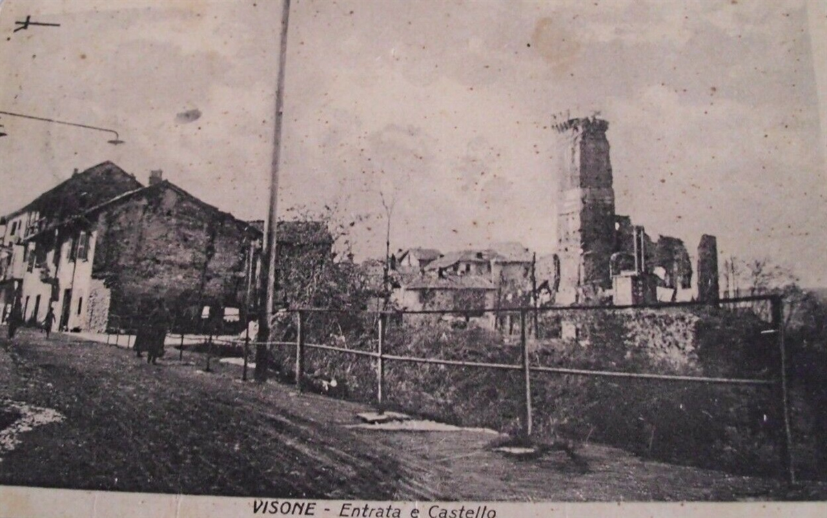 La Rocca con la torre rinascimentale, la porta di accesso alle mura (sulla destra) e le antiche case del Ricetto ora purtroppo abbattute, 1902