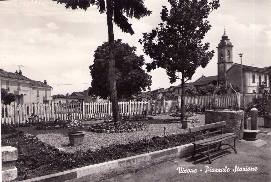 La "nave" con sullo sfondo la Rocca e la torre rinascimentale e, al centro tra gli alberi, una parte del palazzo Bonelli - Madama Rossi