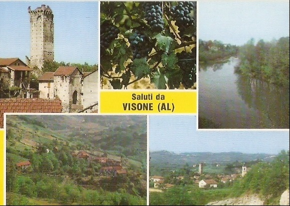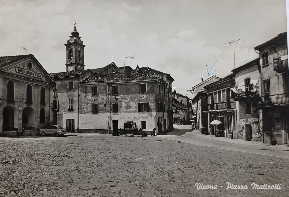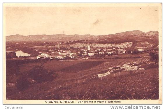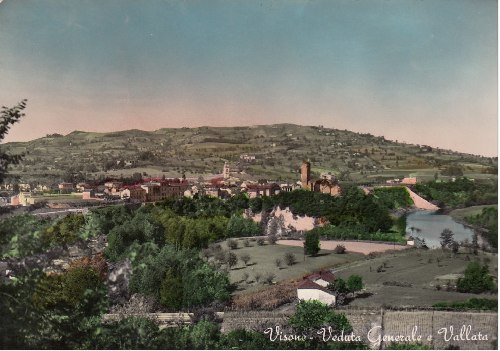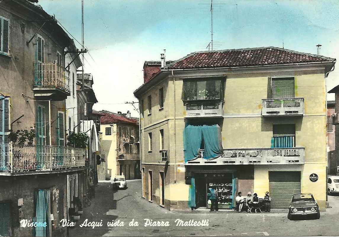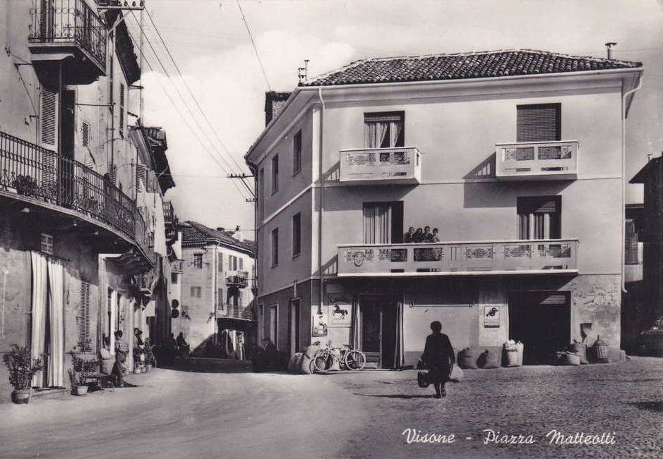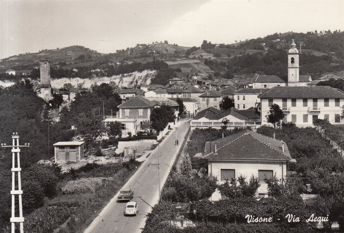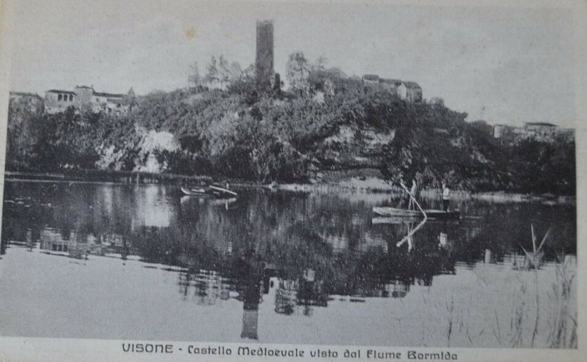 La "nave" (traghetto che collegava il paese con al Regione Cavallera oltre Bormida), con sullo sfondo la Rocca e la torre rinascimentale e, sulla sinistra, il palazzo Bonelli - Madama Rossi, 1941