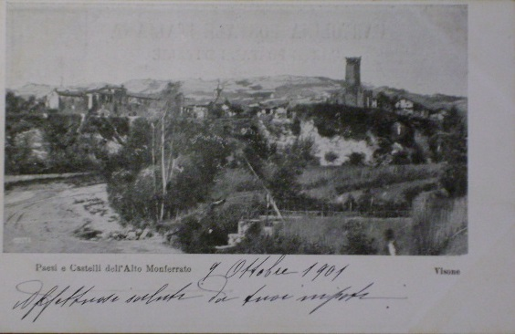 Veduta della Rocca in un disegno tratto da una antica stampa di Enrico Gonin, riprodotto in una cartolina del 1911
